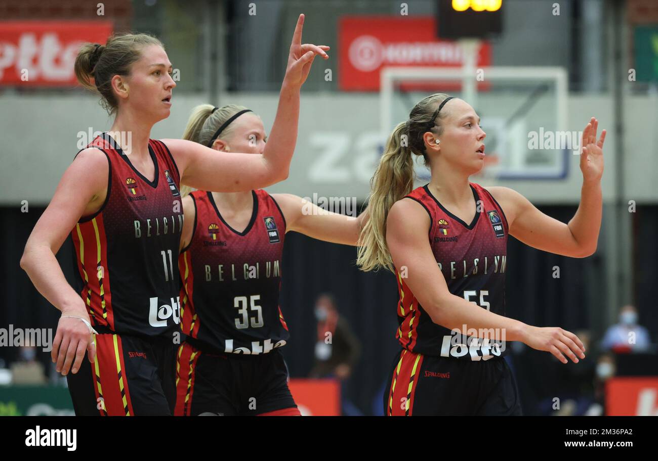 Emma Meesseman In Belgio Julie Vanloo In Belgio E Julie Allemand In Belgio Nel Corso Di Una Partita Di Basket Tra La Nazionale Belga Cats E La Germania Domenica 14 Novembre 2021